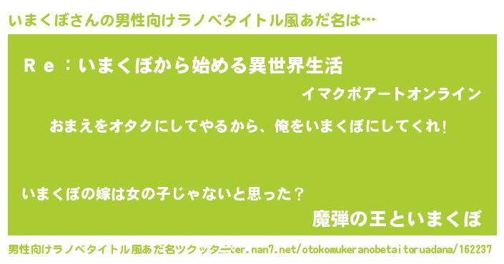 | 女子向けラノベタイトル風あだ名 | 『いまくぼ恋絵巻』『いまくぼ様がみてる』 |