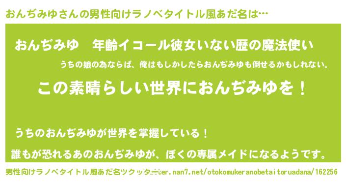 おんぢみゆさんの男性向けラノベタイトル風あだ名をツクッター!