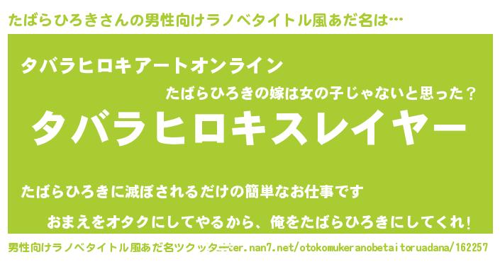 | 胡散臭い通販商品みたいなあだ名 | 『必ず成功する霊験あらたかなお札…その名も「たばらひろき」』 |