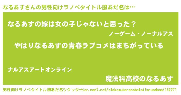 | 女子向けラノベタイトル風あだ名 | 『なるあすの雑貨屋さん』 |