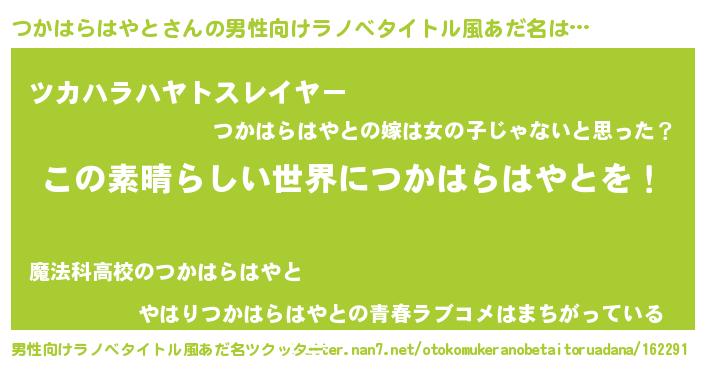 | 意味不明あだ名 | 『住所不定無職つかはらはやと(93歳)』 |