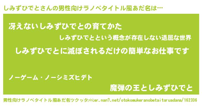 | ヘコむあだ名 | 『しみずひでと(爆)』『酢こんぶ』 |