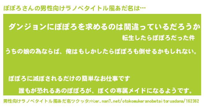 | ファンタジー風あだ名 | 『エターナルポポロー』『ポポディッシュ』 |