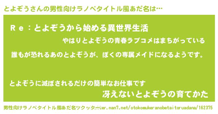 | 意味不明あだ名 | 『永久保存とよぞう』『自称とよぞう』 |