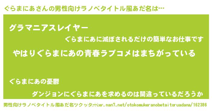 | 肩書あだ名 | 『ぐらまにあ国家主席』『ぐらまにあ中将』 |