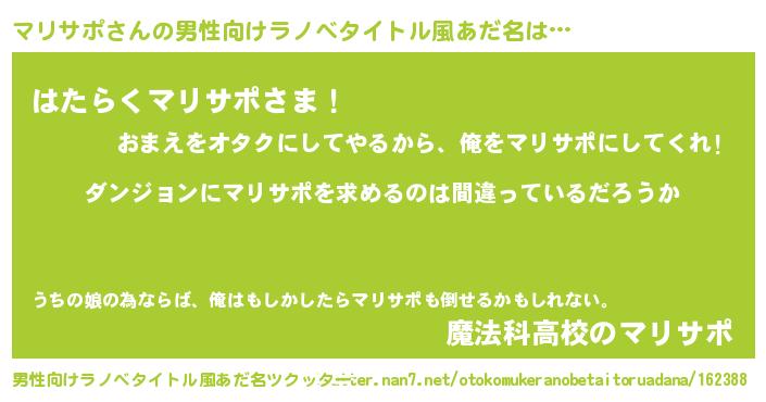 | 女子向けラノベタイトル風あだ名 | 『マリサポは平凡を望む』 |