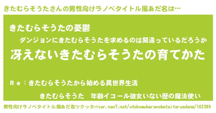 | 女子向けラノベタイトル風あだ名 | 『シンデレラきたむらそうた家の靴箱館』 |