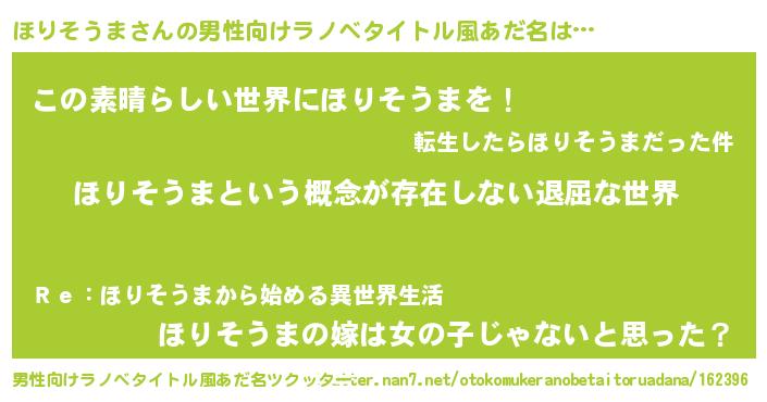 | 意味不明あだ名 | 『永久保存ほりそうま』『自称ほりそうま』 |