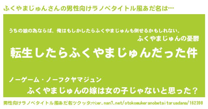| 女子向けラノベタイトル風あだ名 | 『ふくやまじゅんの玉の輿計画!』 |