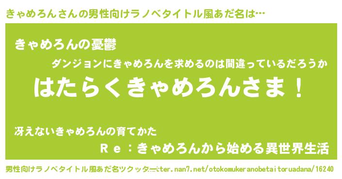 | 伝説のあだ名 | 『伝説の竜騎士きゃめろん』 |
