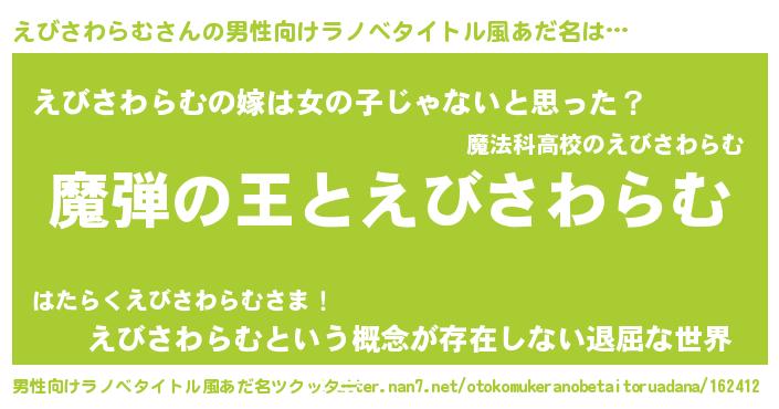 | 意味不明あだ名 | 『住所不定無職えびさわらむ(41歳)』 |