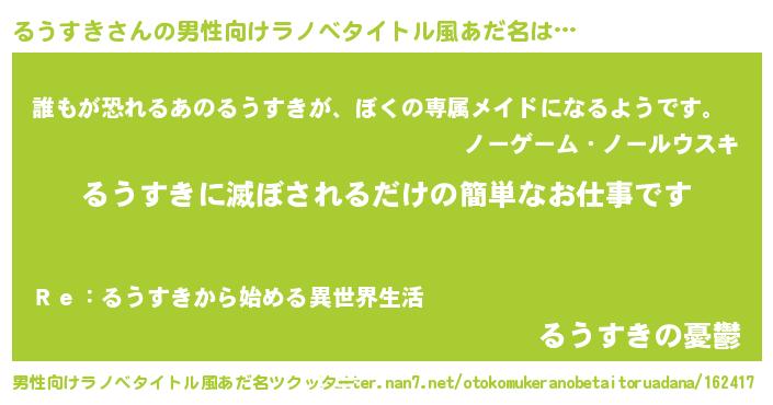 | ヘコむあだ名 | 『るうすき(小並感)』『るうにゅー』 |