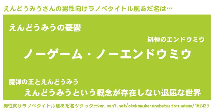 | ヘコむあだ名 | 『えんっふぃ~』『えんどうみう(笑)』 |