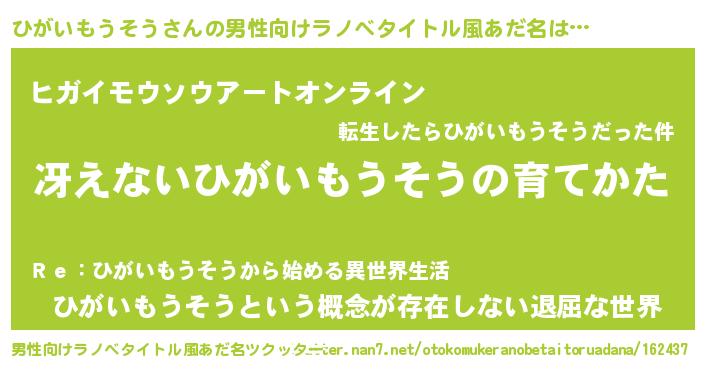 | ヒーロー風カッコイイあだ名 | 『スーパーヒガイモウソウ』 |