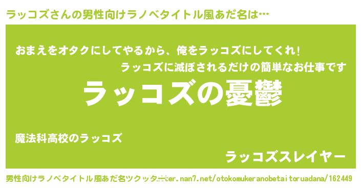 | 胡散臭い通販商品みたいなあだ名 | 『モテモテ間違いなしブレスレット…その名も「ラッコズ」』 |
