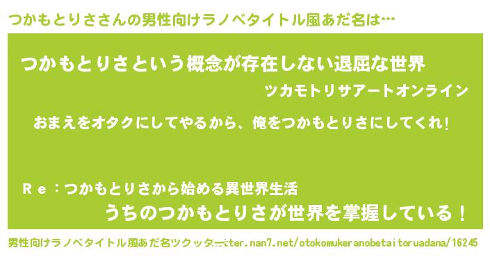| 女子向けラノベタイトル風あだ名 | 『つかもとりさ恋絵巻』 |
