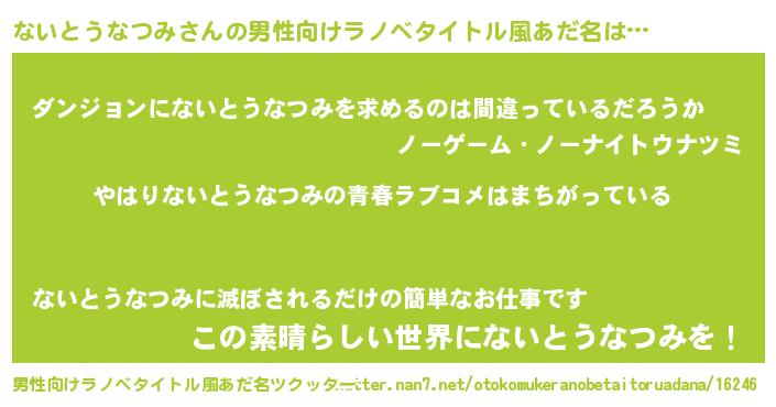 | 女子向けラノベタイトル風あだ名 | 『ないとうなつみの雑貨屋さん』 |