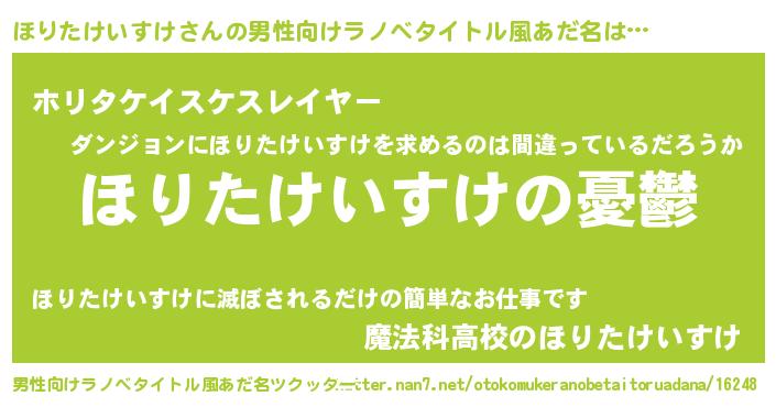 | 胡散臭い通販商品みたいなあだ名 | 『モテモテ間違いなし水晶球…その名も「ほりたけいすけ」』 |