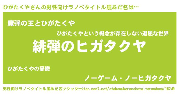 | 意味不明あだ名 | 『住所不定無職ひがたくや(56歳)』 |