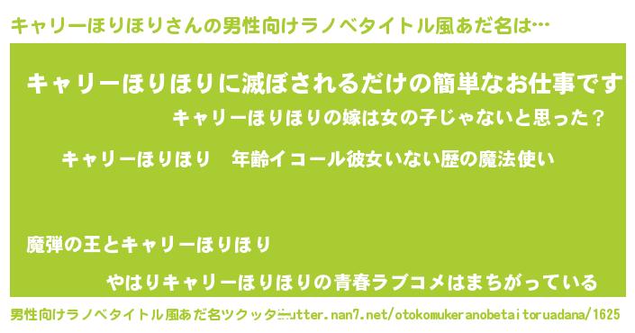 | 女子向けラノベタイトル風あだ名 | 『キャリーほりほりの玉の輿計画!』 |