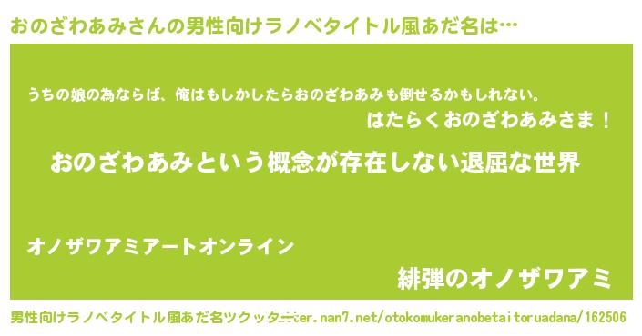 おのざわあみさんの男性向けラノベタイトル風あだ名をツクッター!
