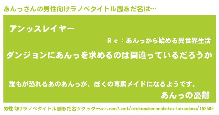 | ヒーロー風カッコイイあだ名 | 『魔戒騎士アン』『スーパーアンッ』 |