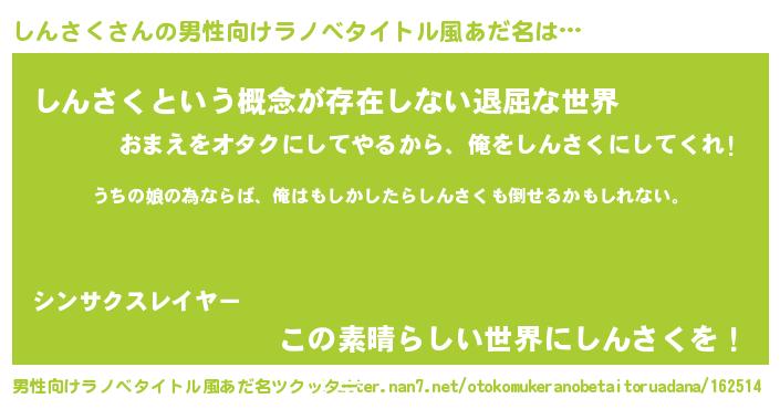 | 女子向けラノベタイトル風あだ名 | 『しんさくの婚約者』『しんさく恋絵巻』 |