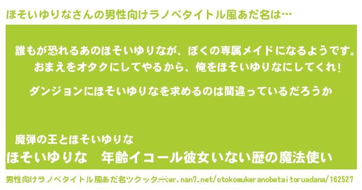| 女子向けラノベタイトル風あだ名 | 『ほそいゆりなの卵を拾いまして』 |