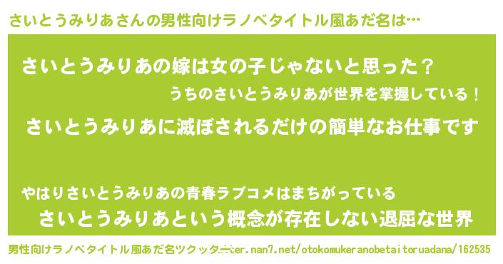 | 肩書あだ名 | 『さいとうみりあプロデューサー』 |
