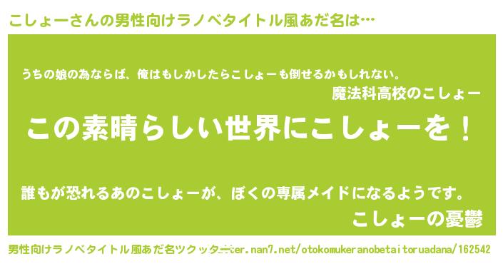 | 胡散臭い通販商品みたいなあだ名 | 『あなたにだけ特別に提供する限定10本のレアな日本酒…その名も「こしょー」』 |