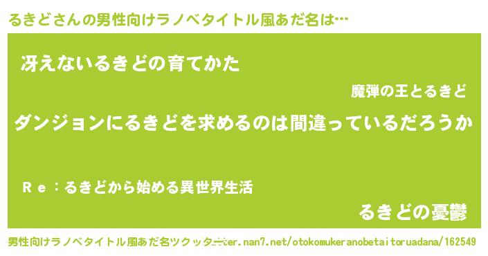 | 胡散臭い通販商品みたいなあだ名 | 『信頼と実績のサプリメント…その名も「るきど」』 |