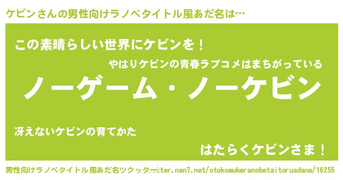 | 女子向けラノベタイトル風あだ名 | 『死神ケビンの再婚』 |