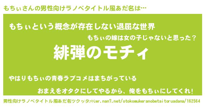 | ヒーロー風カッコイイあだ名 | 『ネオモチィ』『正義の使者もちぃ』 |