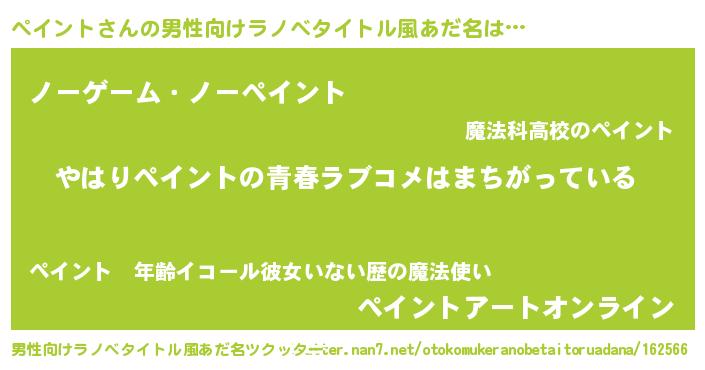 | 女子向けラノベタイトル風あだ名 | 『ペイント伯爵の花嫁』 |