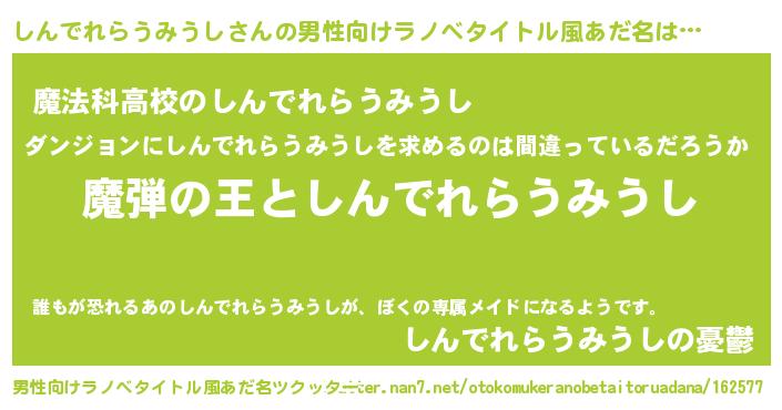 | 女子向けラノベタイトル風あだ名 | 『しんでれらうみうしが死なない童話 林檎のしんでれらうみうしの診療簿』 |