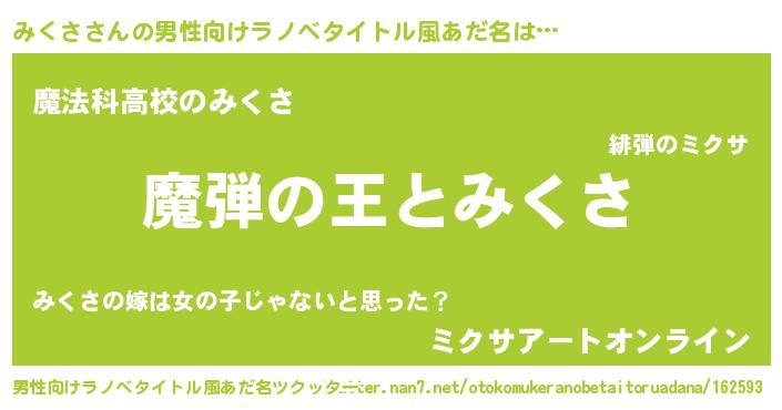 | 意味不明あだ名 | 『住所不定無職みくさ(8歳)』『自称みくさ』 |