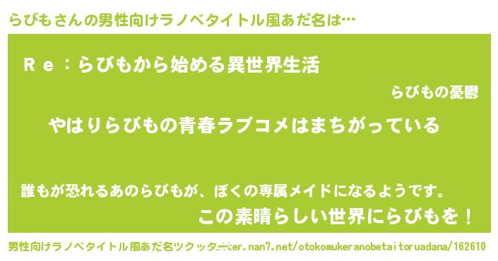 | 意味不明あだ名 | 『らびもフォーエバー』『自称らびも』 |