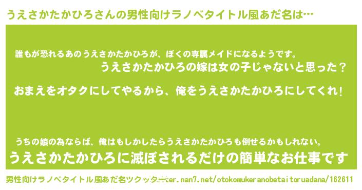 | 女子向けラノベタイトル風あだ名 | 『うえさかたかひろ恋絵巻』 |