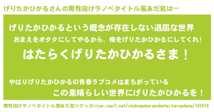 | 肩書あだ名 | 『げりたかひかるプロデューサー』 |