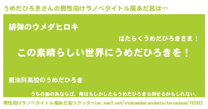| 意味不明あだ名 | 『住所不定無職うめだひろき(71歳)』 |