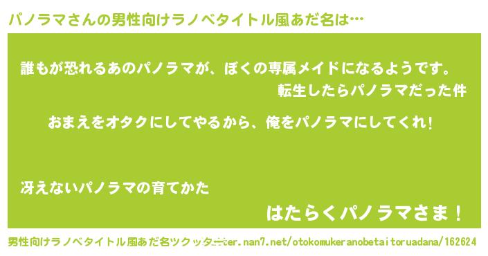 | 女子向けラノベタイトル風あだ名 | 『パノラマ夫妻のなれそめ』 |