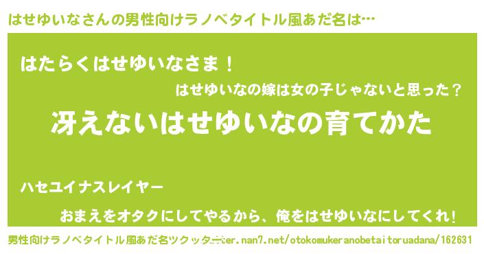 | 女子向けラノベタイトル風あだ名 | 『男装はせゆいなの憂鬱な任務』 |