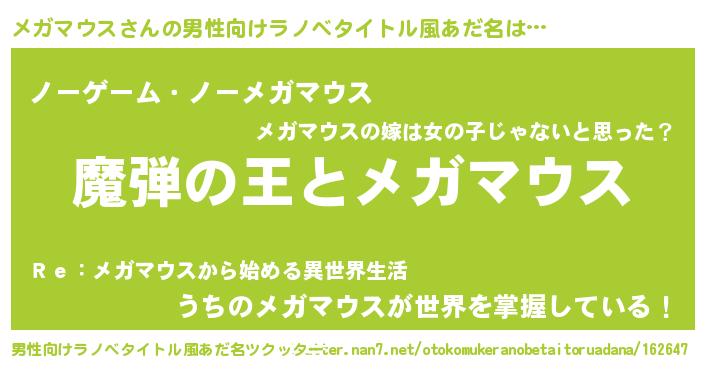 | 女子向けラノベタイトル風あだ名 | 『乙女ゲームの破滅フラグしかない悪役メガマウスに転生してしまった…』 |