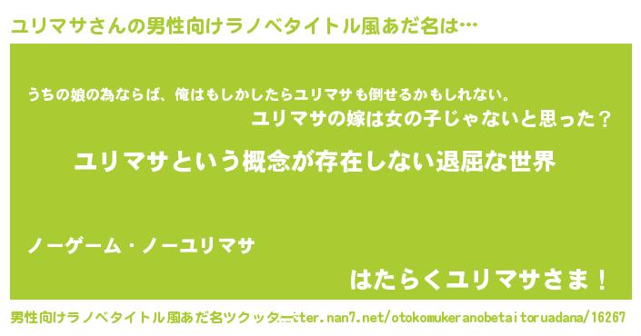 | 意味不明あだ名 | 『永久保存ユリマサ』『自称ユリマサ』 |