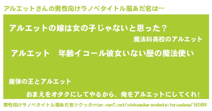 | 女子向けラノベタイトル風あだ名 | 『アルエットの玉の輿計画!』 |