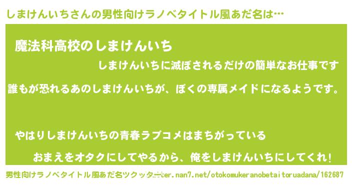 | 女子向けラノベタイトル風あだ名 | 『異世界でカフェしまけんいちを開店しました。』 |