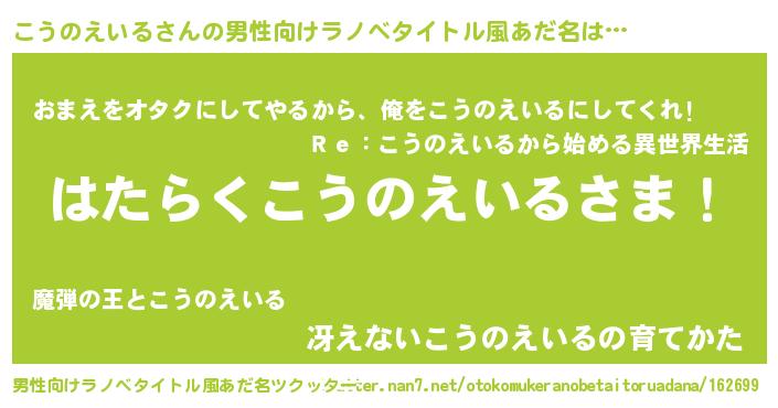 | ヘコむあだ名 | 『こうのえいる(笑)』『豆乳』 |