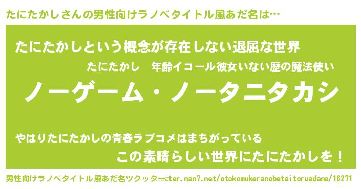 | ヘコむあだ名 | 『たにたかし(笑)』『なまこ酢』 |