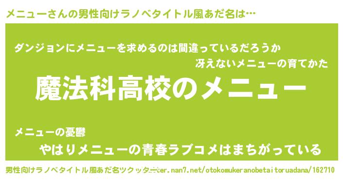 | 女子向けラノベタイトル風あだ名 | 『メニューアンティーク』 |