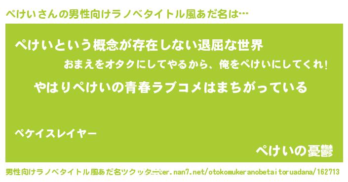 | ヒーロー風カッコイイあだ名 | 『ウルトラぺけいマン』『ネオペケイ』 |